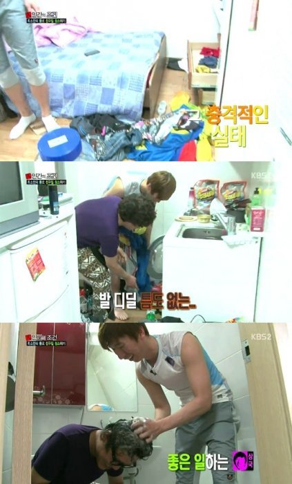 결국 양상국은 “너무 더럽다”고 반복해 말하며 스트레스 받는다고 털어놨다. 다행히 양상국은 최소한의 물로 설거지와 물걸레질을 마치고 류정남의 머리를 감겨주는 등 물을 유용하게 사용했다.
