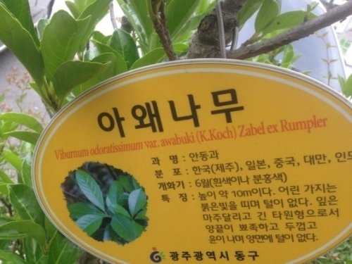 '부르면 짜증 내는 나무' 사진에는 한 나무에 걸려 있는 팻말의 모습이 담겨있다. '부르면 짜증 내는 나무' 사진 속 팻말에는 '아왜나무'라고 적혀 웃음을 자아냈다.