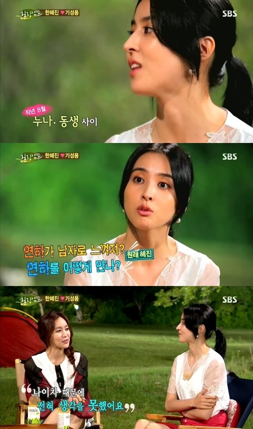 한혜진은 “나는 연하 만나는 분들께 ‘연하 어떻게 만나?, 남자로 느껴지냐?’고 물어볼 정도로 연하에 관심이 없었다. 그때까지만 해도 기성용이 아기처럼 느껴졌다”고 말했다.