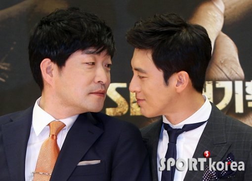 배우 손현주, 고수(오른쪽)가 25일 오후 서울 목동 SBS에서 열린 드라마 ‘황금의 제국’ 제작발표회에 참석해 포토타임을 갖고 있다.