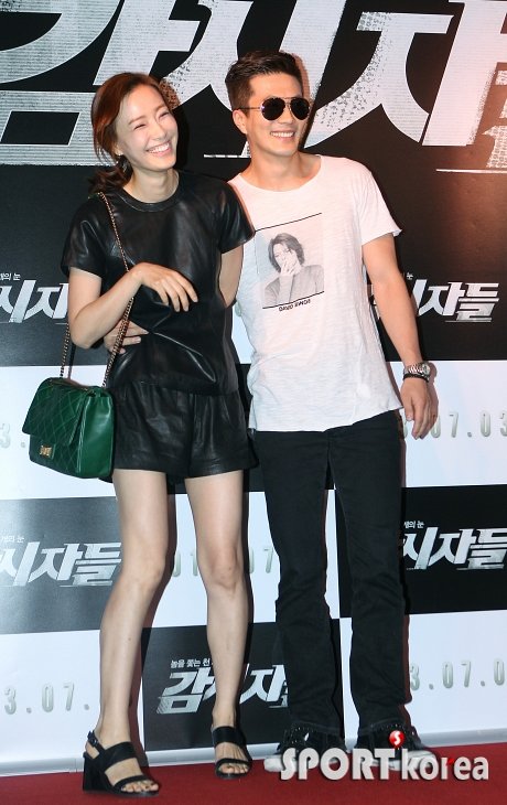 배우 권상우, 손태영 부부가 25일 오후 서울 코엑스 메가박스에서 열린 영화 ‘감시자들’ VIP 시사회에 참석해 닭살애정을 보이고 있다.