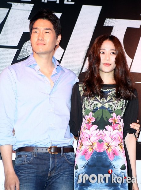 배우 유지태-김효진 부부가 25일 오후 서울 코엑스 메가박스에서 열린 영화 ‘감시자들’ VIP 시사회에 참석해 포즈를 취하고 있다.