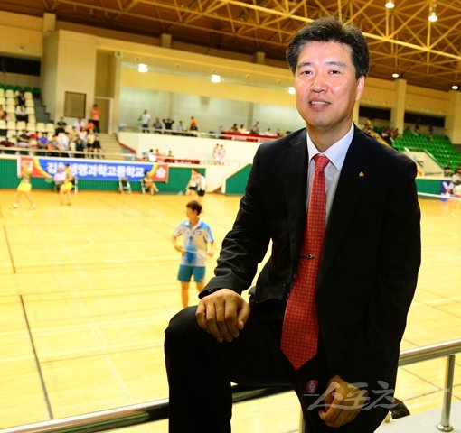 성한국 전 배드민턴대표팀 감독이 신생팀 MG새마을금고 초대 사령탑으로 데뷔전을 치렀다. 지난해 런던올림픽 이후 공백기를 거친 그로선 복귀전이기도 했다. 성 감독이 25일 제56회 전국여름철종별배드민턴선수권대회 5일째 경기가 펼쳐진 전남 여수 흥국체육관에서 카메라 앞에 섰다. 여수|박화용 기자 inphoto@donga.com 트위터@seven7sola