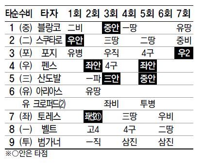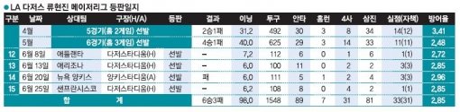 다저스는 라이벌 자이언츠전 5연패의 사슬을 끊고 시즌 33승째(42패)를 챙겼지만 여전히 내셔널리그 서부지구 선두 애리조나 다이아몬드백스와의 격차는 8경기나 된다. 최근 부진으로 승률이 5할(38승38패)로 추락한 자이언츠와도 4.5경기차를 보이고 있다. “이제 우리에게 중요하지 않은 경기는 없다. 전반기 막판 스퍼트를 해 후반기 대반전을 노릴 발판을 마련하고 싶다”는 매팅리 감독의 다짐에는 비장함이 묻어 있었다.