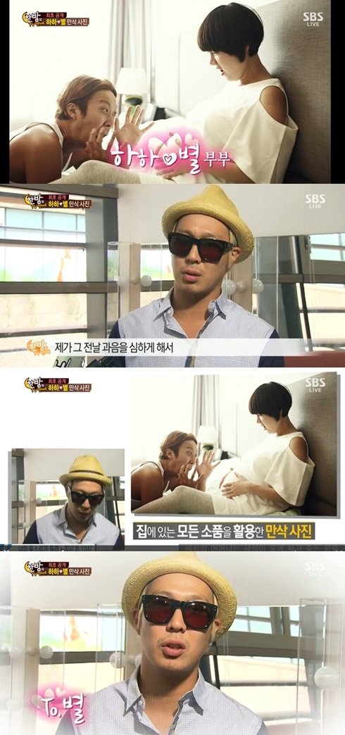 하하와 별은 26일 오후 방송된 SBS '한밤의 TV 연예'를 통해 집에서 촬영한 만삭 화보를 공개했다.