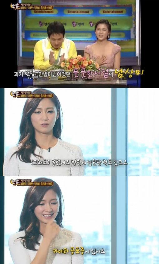 이태란이 “예전에 ‘한밤’ MC 보지 않았냐”고 묻자 남상미는 “떨렸다. 병원에 입원한 적도 있다”고 고백했다.