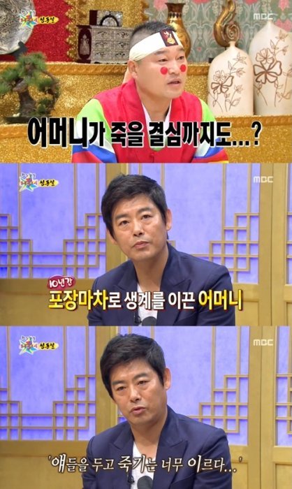 이어 “당시 우리가 선택한 음식은 순대국이었다. 나중에 들어보니 그때 어머니는 자살을 결심하셨다. 하지만 자살을 결심했음에도 불구, 비싼 것도 못 먹는 아이들을 보며 아직 이런 아이들을 두고 먼저 죽기는 이르다고 생각하셨다고 하더라. 좋은 것도 비싼 것도 아닌 순대국을 먹는 자식들의 모습을 안쓰럽게 여기신 것 같다”고 털어놨다.
