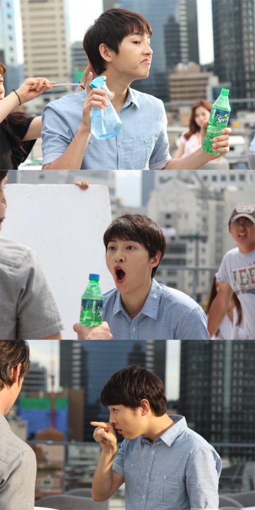 또한 그늘로 쉬러 가는 외국인 모델의 앞을 가로막으며 익살스러운 애교를 부리거나, 스텝들 앞에서 스프라이트 음료를 마시는 정석의 표정을 보여줘 더위에 지친 스텝들은 잠시나마 더위의 시름을 잊고‘송중기 먹방 따라잡기’에 빠져 웃을 수 있는 시간이 되었다.