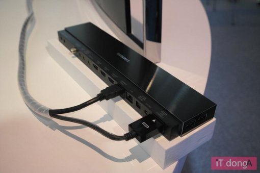 또한 제품 뒷면에는 아무것도 없다. 단지 선만 두 개 있을 뿐이다. 하나는 전원 케이블이고, 다른 하나는 '원 커넥트(One Connect)'에 연결하기 위한 케이블이다. 원 커넥트는 거추장스러운 단자를 TV 뒷면에서 별도로 빼낸 기기다. 사용자가 커브드 OLED TV에 홈시어터, PC, 비디오 게임기를 연결하고 싶다면, 원 커넥트에 연결하면 된다. TV 뒷면에 선이 주렁주렁 연결된 광경과 작별이라는 뜻.