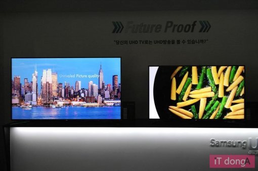 삼성전자는 이 날 행사에서 커브드 OLED TV와 함께 65, 55인치 UHD(3,840x2,160) TV F9000을 처음 선보였다.