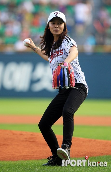 28일 오후 서울 잠실구장에서 열린 ‘2013 한국야쿠르트 세븐 프로야구’ LG 트윈스와 SK 와이번스의 경기에서 배우 남상미가 시구하고 있다.