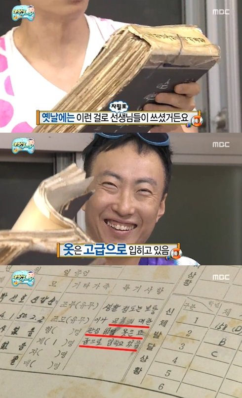 담임선생님의 소견도 웃음을 자아냈다. 당시 선생님은 박명수의 집안에 대해 “집은 보통으로 사나, 교육에는 관심이 없고 옷은 고급으로 입힌다”라고 적어 멤버들을 폭소케 했다.