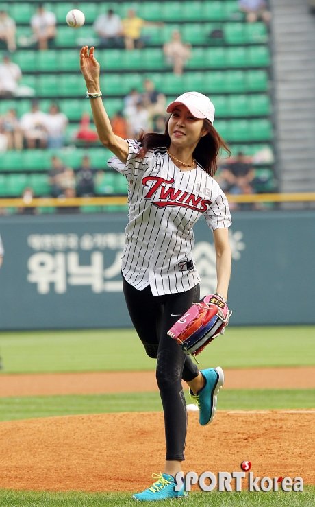 30일 오후 서울 잠실야구장에서 열린 `2013 한국 야쿠르트 세븐 프로야구` LG 트윈스와 SK 와이번스의 경기에서 배우 한은정이 LG의 승리를 기원하는 시구를 하고 있다.