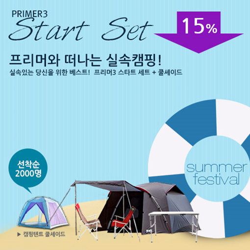 프라도(www.prado.co.kr)는 7월 썸머 캠핑페스트발 프리머와 떠나는 실속캠핑 이벤트로 프리머3 텐트 스타트 세트를 출시했다. 스타트세트는 텐트, 테이블, 릴렉스체 2개가 포함된다. 최대 15%할인과 쿨쉐이드 그늘막텐트를 사은품으로 지급한다. 선착순 구매자 2천동 한정이 옥에 티다.