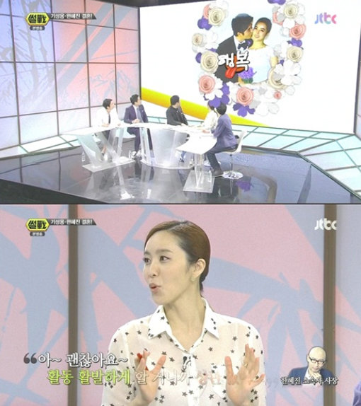 4일 밤 방송된 종합편성채널 JTBC ‘썰전’에서 배우 한혜진과 친분이 있는 방송인 박지윤은 한혜진 결혼식 현장의 분위기를 전했다.