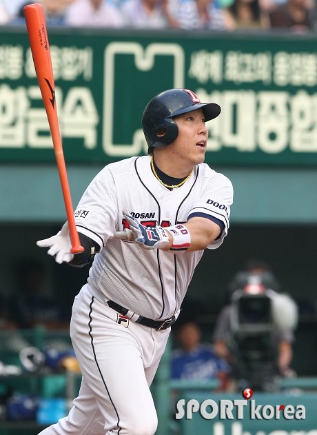 ‘2013 한국야쿠르트 세븐 프로야구’두산 베어스와 삼성 라이온즈의 경기가 5일 오후 서울 잠실야구장에서 열렸다. 1회말 1사 3루에서 두산 김현수가 삼성 선발 배영수를 상대로 선제 투런포를 쏘아 올리고 있다.
