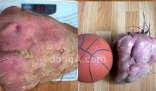 공개된 사진에는 고구마가 담겨 있다. 이때 이 고구마의 크기가 놀랍다. 농구공만 한 것. 게다가 무게 또한 6kg을 넘는다. 이에 사진을 올린 사람은 구워 먹기도 힘들고 보기에도 안 좋다며 ‘폭풍 성장의 나쁜 예’라고 지칭했다.
