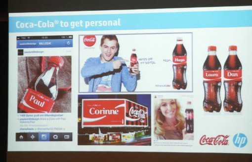 코카콜라는 유럽 각 나라에서 가장 많이 사용하는 이름 150개를 선정하고, 이를 코카콜라와 코카콜라 제로, 코카콜라 라이트 병 라벨에 프린트했다. 이를 통해 소비자들의 구매를 유도했다. 예를 들어 한국이라면 ‘현우’, ‘은정’, ‘수진’, ‘준영’ 등의 이름이 코카콜라 병 라벨에 적혀 있는 것이다. 소비자들은 이에 친근감을 느끼고 자신의 이름이 적힌 콜라, 가족이나 친구들의 이름이 적힌 콜라를 구입했다. 이는 젊은이들이 많이 이용하는 소셜미디어에 언급되며 더욱 큰 홍보 효과를 냈다.
