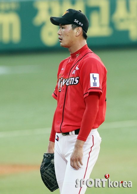 9일 오후 대구 시민야구장에서 열린 ‘2013 한국 야쿠르트 세븐 프로야구’ 삼성 라이온즈와 SK 와이번스의 경기 1회말 1사 3루 상황에서 SK 선발 김광현이 보크로 실점을 한 후 허탈한 표정을 짓고 있다.