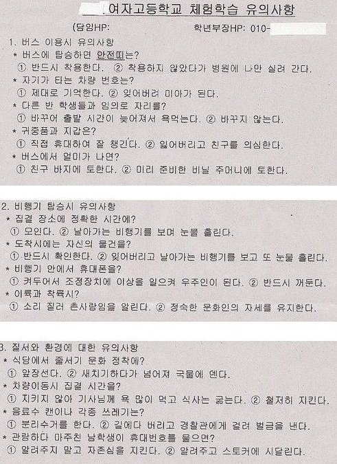 최근 온라인 커뮤니티 게시판에는 ‘여고의 수학여행 유의사항’이라는 제목으로 사진이 올라왔다.
