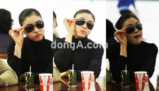 머리를 묶고 검정색 상의를 입은 김연아는 선글라스 테를 한 손으로 잡고 허세표정을 지어보였다.
