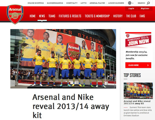 잉글랜드 프리미어리그(EPL)의 아스널이 2013~2014 시즌에 착용할 새 원정 유니폼을 공개했다.