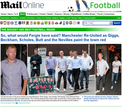 영국의 일간지 ‘데일리 메일’은 지난 9일 ‘92년의 주역들이 다시 뭉쳤다’고 보도했다. 이들의 만남은 맨유 입단 22주년을 축하하기 위해 성사됐다.