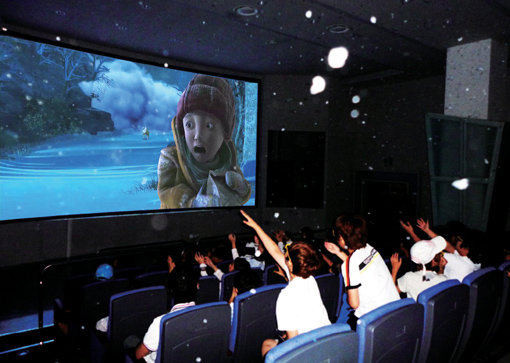 방학 시즌을 맞아 휴가와 교육을 한 번에 해결할 수 있는 에듀테인먼트 휴가지가 인기다. 공익 안전테마파크인 태백 365 세이프타운을 찾은 학생들이 설해체험관에서 3D영상을 시청하고 있다. 사진제공|태백365세이프타운