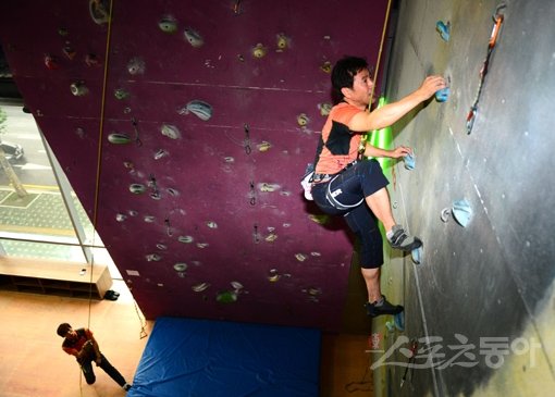 쭈뼛쭈뼛 거리자 깡마른 사내가 “어서 오십시오!” 하며 외마디 소리를 냈다. 지도 선생님인 K2 C&F의 김명수 스포츠클라이밍 인스트럭터였다. 김 코치는 “스포츠클라이밍 시 부상을 예방하기 위해서는 준비운동을 철저히 해야 한다”며 “준비운동은 약간 땀이 나는 정도가 좋다”고 했다.