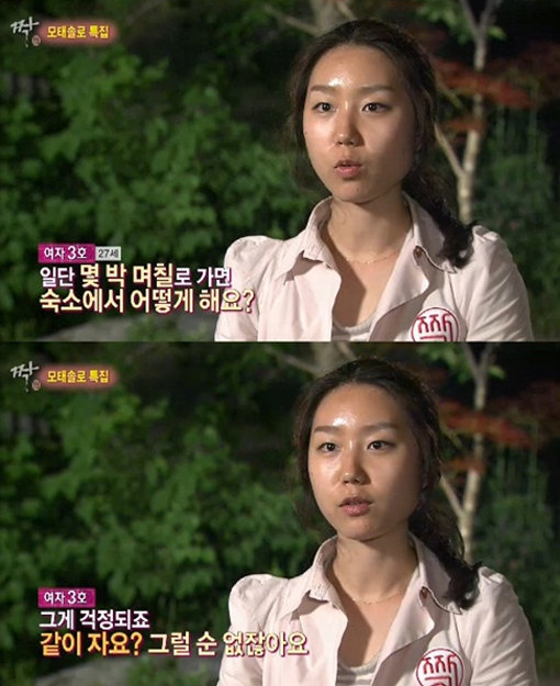 여자 3호는 “다른 것보다 그게 정말 걱정된다”며 “같이 자요? 그럴 수는 없다”고 말했다.