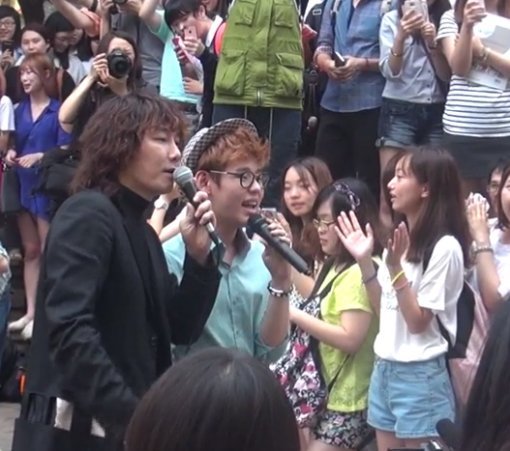 지난 10일 오후 홍대 예술의 거리 근방에서 열린 신인가수 케이헌터의 게릴라 콘서트에 가수 김장훈이 깜짝 등장해 케이헌터는 물론 현장에 있던 200여 명의 관객을 깜짝 놀래켰다.