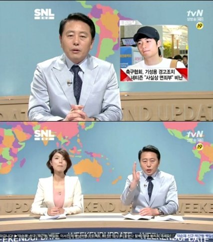 최일구는 13일 생방송으로 진행된 tvN ‘SNL코리아’에서 기성용 SNS 파문을 언급했다.