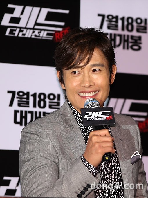 배우 이병헌이 15일 오후 서울 광진구 롯데시네마 건대입구에서 열린 영화 ‘레드 : 더 레전드’ 언론배급시사회에서 취재진의 질문에 답변을 하고 있다.