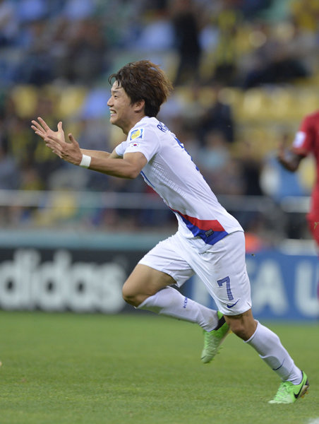 U-20 대표팀 출신 류승우가 독일 명문 도르트문트로부터 러브 콜을 받았다. 하지만 도르트문트의 조건이 기대 이하여서 이적 가능성은 높지 않아 보인다. U-20 월드컵 조별리그 2차전 포르투갈과 경기에서 득점한 뒤 기뻐하고 있는 류승우. 사진제공|대한축구협회