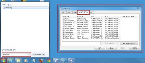 그리고 사실 PC의 속도저하는 하드웨어적인 문제보다는 소프트웨어가 원인이 되는 경우가 더 많습니다. 과도하게 많은 프로그램을 설치해두면 속도저하가 발생할 가능성이 아주 높지요. 특히 그 중에 시작프로그램에 등록이 되는 프로그램, 혹은 툴바와 같은 프로그램은 쓰지 않더라도 상시적으로 시스템의 자원(CPU, 메모리)을 점유합니다. 따라서 이런 프로그램이 많이 설치되어있으면 시스템의 전반적인 속도가 느려지곤 합니다.
