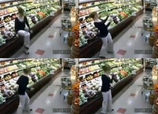 공개된 영상에는 마트에서 장을 보고 있는 아줌마의 모습이 담겨 있다. 그런데 이 아줌마는 갑자기 멜론을 손에 들고 주위를 살핀 뒤 마치 축구공처럼 헤딩을 하고 가슴과 무릎으로 트래핑을 했다.