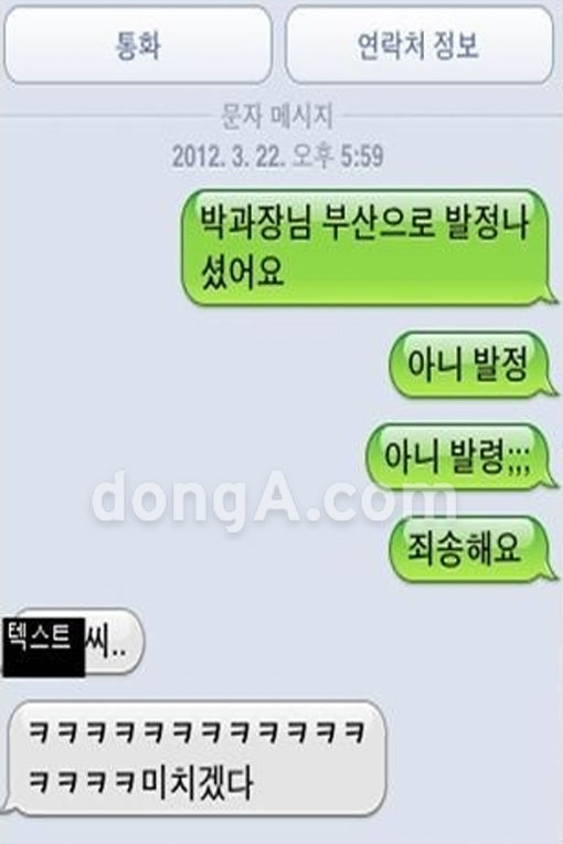 신입사원은 “아니 발령”이라며 급히 정정한 뒤 사과했다. 이에 박과장은 “XX씨”라며 “ㅋㅋ(웃음표시) 미치겠다”라고 답장했다.