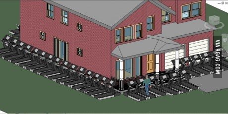 그림을 보면 좀비를 막기 위한 수단으로 중요한 것은 바로 ‘런닝머신’이다. 이 런닝머신을 집 주변에 둘러 놓으면 좀비들이 제자리 걸음을 한다는 것.