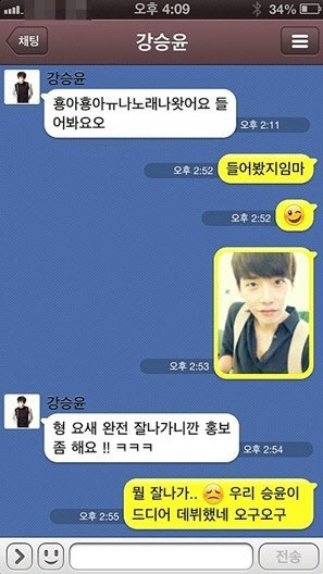이종석은 강승윤과의 SNS 대화를 캡쳐한 사진을 글과 함께 올렸다.