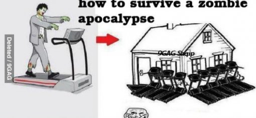 사진 속에는 러닝머신으로 둘러싸인 집의 모습이 그려져 있다. 앞으로 나가는 좀비의 특성을 고려해, 좀비들을 러닝머신 위로 끝없이 달리게 하는 것이 전략인 셈.