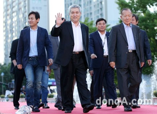 감독 임권택(왼쪽에서 두번재), 배우 안성기, 김동호(전 부산제영화제위원장) 등 영화 관계자들이 18일 오후 경기 부천 원미구 부천실내체육관에서 열린 ‘제17회 부천국제판타스틱영화제’ 개막식에 앞서 레드카펫을 걷고 있다. 부천국제판타스틱영화제는 오는 28일까지 11일간 부천시 일대에서 진행된다.