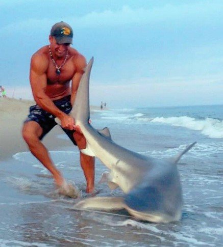 ‘상어 낚은 낚시꾼’이 화제다.