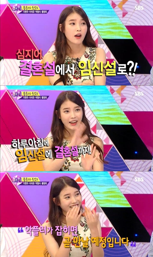 이에 MC 봉태규는 “그때 임신설도 함께 나왔다. 아이유가 살도 좀 쪘던 모양이다, 공교롭게 누리꾼들이 살이 오른 아이유 사진을 올렸다”며 또 다른 루머에 대해 물었다.