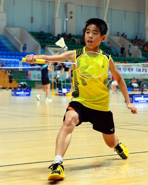 25일 전남 화순 하니움문화스포츠센터에서 열린 이용대 올림픽 제패 기념 2013 화순-빅터 전국학교대항 배드민턴선수권대회에서 봄철 여름철 종별 선수권대회 초등부 단체전 화순제일초등학교와 풍암초등학교의 준결승에서 박현승(화순제일초)이 1경기(단식)에서 나광민(풍암초)의 공격을 리턴하고 있다. 화순|박화용 기자 inphoto@donga.com 트위터 @seven7sola