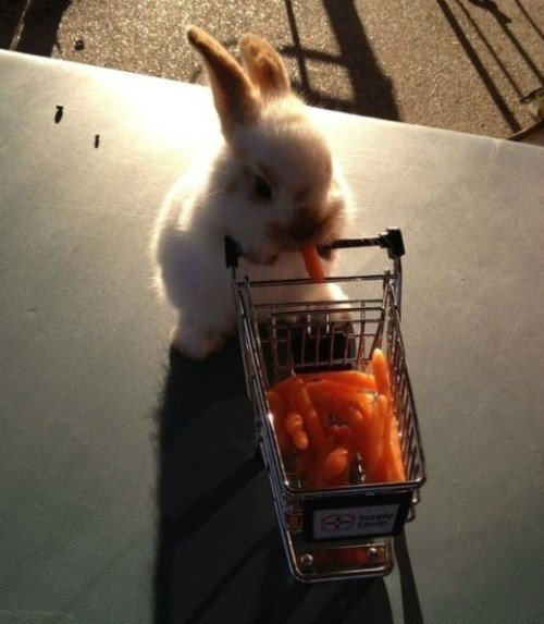 공개된 사진 속 ‘쇼핑하고 온 토끼’는 작은 쇼핑 카트 가득 당근을 담고 손잡이에 앞발을 올리고 있다. ‘쇼핑하고 온 토끼’는 입에 당근 조각을 하나 물고 있다.