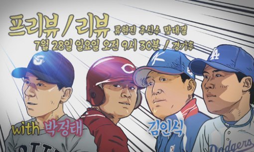 류현진의 스승으로 알려진 김인식 전 한화 이글스 감독과 추신수의 외삼촌으로 알려진 박정태 전 롯데 자이언츠 2군 감독이 이번 경기의 프리뷰와 리뷰를 위해 직접 출연하게 된 것.