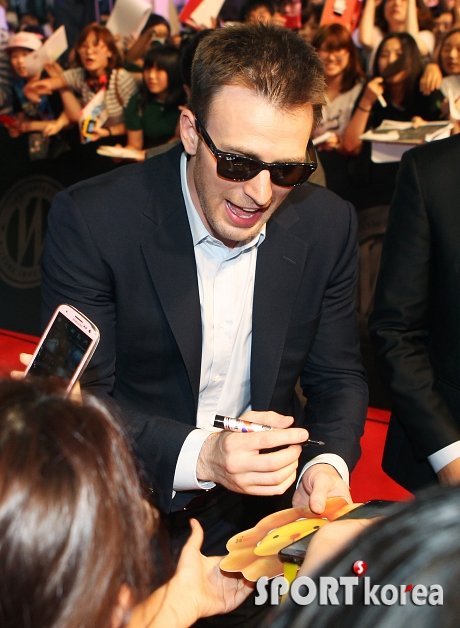 크리스 에반스가 29일 오후 서울 영등포 타임스퀘어에서 열린 영화 ‘설국열차’(감독 봉준호) VIP 행사에 참석해 팬들에게 사인을 해 주고 있다.