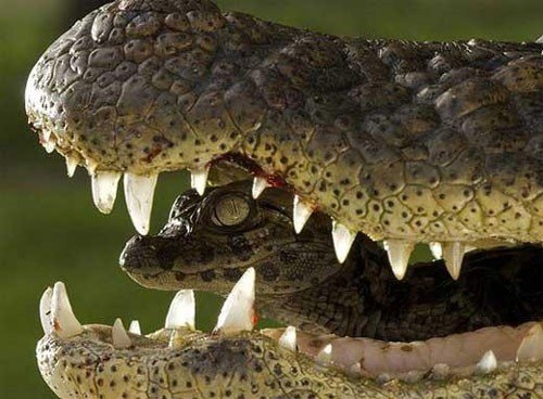 공개된 '악어 입속 새끼 악어' 사진 속 새끼 악어는 어미 악어 입속에서 밖을 내다보고 있어 눈길을 끌었다.