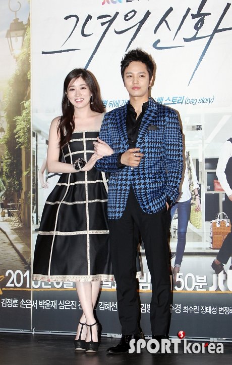 배우 최정원, 김정훈(오른쪽)이 30일 오후 서울 동대문 메가박스에서 열린 jtbc 드라마 ‘그녀의 신화’ 제작발표회에 참석해 포즈를 취하고 있다.