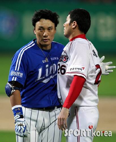 이승엽(37·삼성)이 흥분한 서재응(36·KIA)을 침착히 말려 누리꾼들로부터 호평을 받았다.